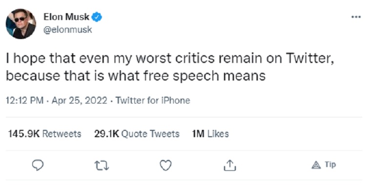 — Elon Musk (@elonmusk) April 25, 2022