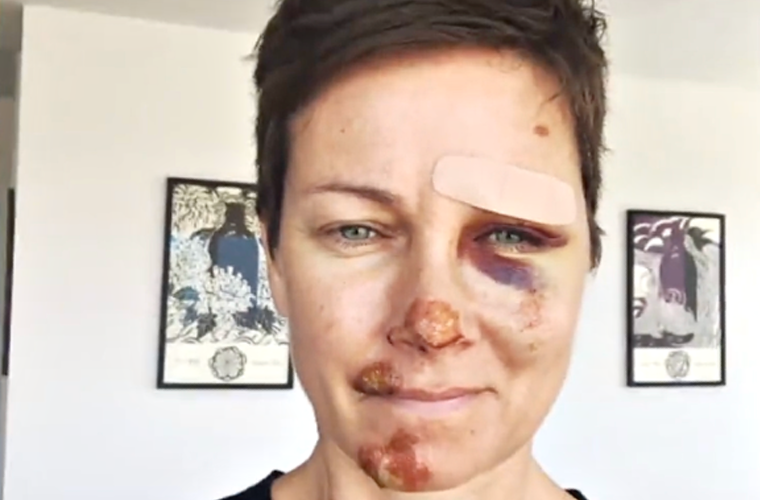 In the picture here, we can see that Stephanie is certainly a sight for sore eyes. She has extensive bruising on her nose and face, as well as the lower part of her chin. To top it all off, she had a bandage wrapped around her head to stop any potential bleeding.