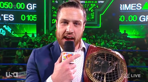 After a recap of the chaos that was the Fatal Five Way ladder match, Cameron Grimes would be showered with chants of ‘You deserve it.’ Grimes said that he made good on his promise, and knows that his late father is smiling ear to ear – cuz his boy did it.