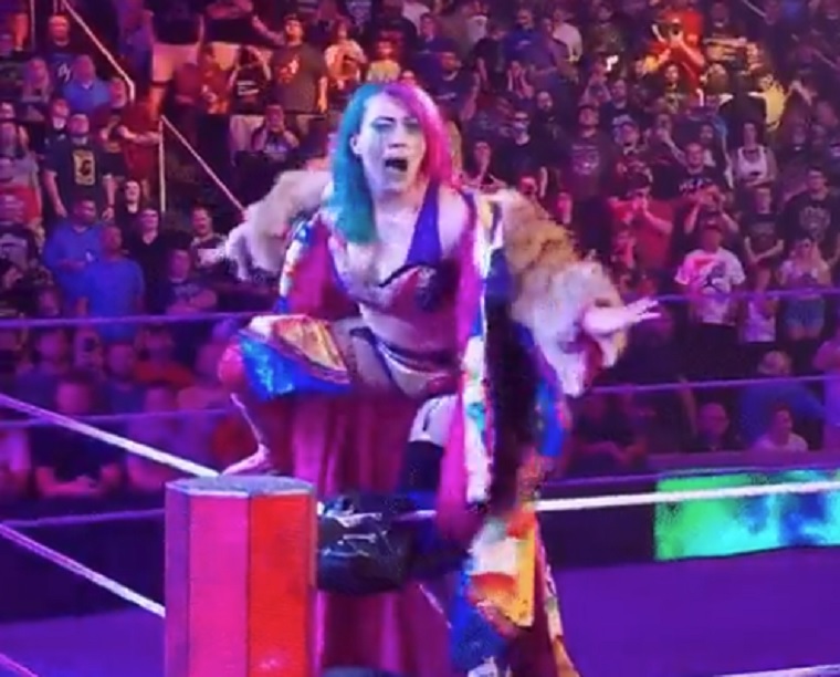 As she was in the middle of her ran, Asuka’s music played and she came out. It’s been two years since they met face to face on WWE TV.