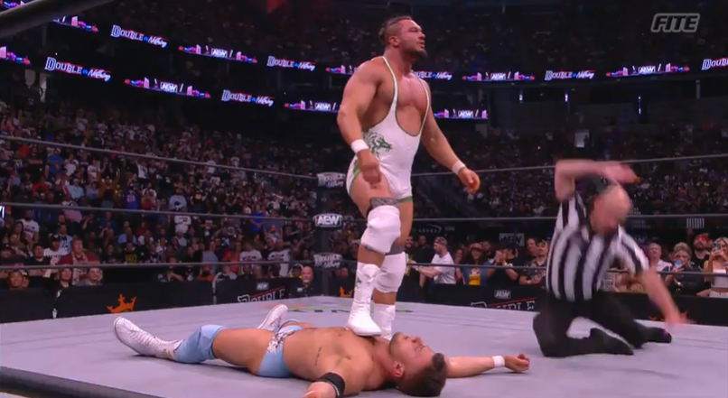 MJF went for a hurricanrana to block a powerbomb, getting a two count. The referee and Wardlow would catch him trying to use the Dynamite Diamond Ring, and that might have been his last trick. He’d offer to double his pay, but the handshake just caught MJF in the grasp of Wardlow.