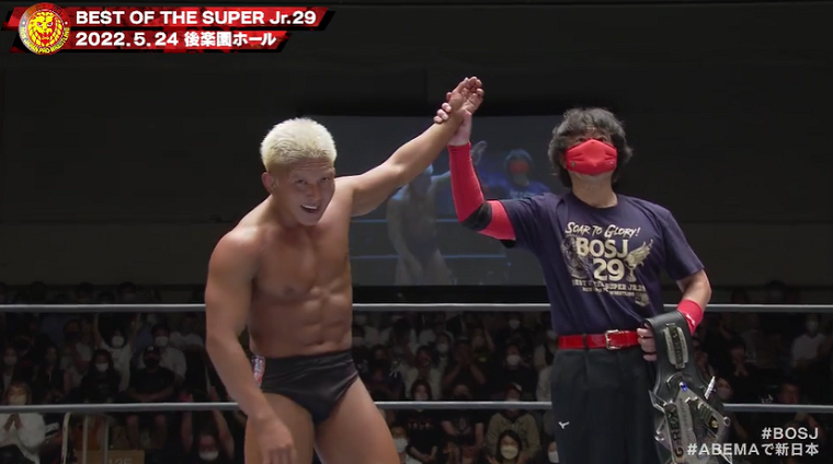 There is just one BULLET CLUB vs. BULLET CLUB match in this tournament – with Taiji Ishimori facing SHO tonight. They’re firmly on the same side, but SHO is looking to earn himself a chance to become the IWGP Junior Heavyweight Champion, and redeem some previous losses to Ishimori. Whoever wins here has a claim as the junior ace of BULLET CLUB, making this one worth more than just some points.