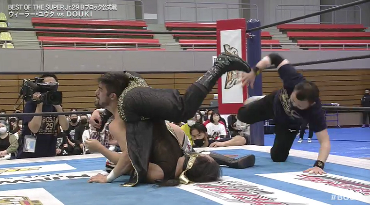 Back into the ring, a springboard flatliner would get Yuta a two count. DOUKI would miss an enziguri – but was able to apply the DOUKI CHOKEY. Yuta would break free and avoid the Daybreak DDT before hitting a German Suplex. Cattle Mutilation would be applied, but DOUKI found the bottom rope with his foot.