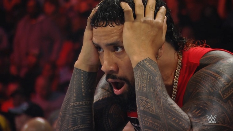 Riddle got his knees up to counter an Uso Splash, but Jey knocked Riddle off the top rope and Jimmy went for the pin with Jey’s help and the ref caught him and banned Jey from ringside.