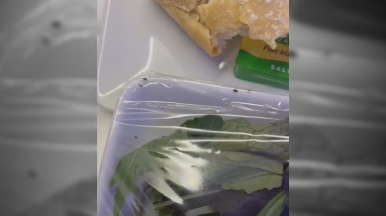 The passenger would post a video of the disgusting dish discovery. According to TMZ, the man was on a flight from Frankfurt to the Dallas-Fort Worth area when he found tiny dark bugs on his meal. The salad was wrapped up with plastic and the bugs could be seen just vibing on the veggies, folks.
