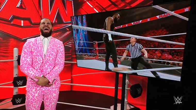 While Riddle was down, Seth Rollins came out and hit Riddle with a cheap shot and sent him to the floor.
