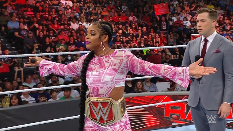 In the ring, Bianca Belair tore into Carmella and got a rumble out of the crowd when she started running her down, and she redirected to say Carmella has the ability to be great and after a couple of minutes she got around to challenging Carmella to face her tonight.