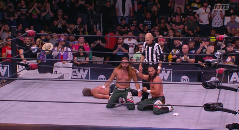 War Drums would be hit on both brothers, before YOSHI-HASHI would be caught with the Locomotion Northern Lights Suplexes, with Goto caught in the fourth one. Nick would dive onto Bishamon on the floor, and Matt celebrated in the ring like they won the match.
