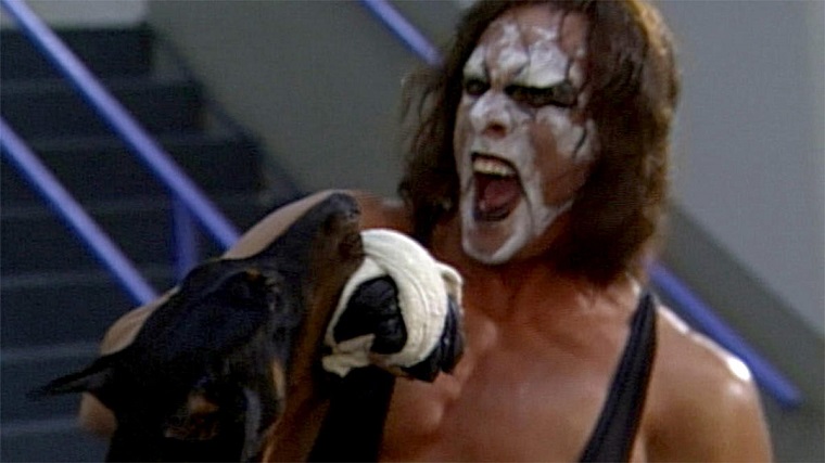 What was Sting vs. Rick Steiner? It meandered for the most part then “Sting” gets attacked by dogs with assistance from Scott Steiner and Tank Abbott and the referee has to stop the thing to save Sting. If you’re stoned and watch this, it might be entertaining in a humorous way—it was—but then I rewatched it. This is a match where if you had a dream about it, someone just woke you up, and you’re trying to explain it, nothing would make sense.