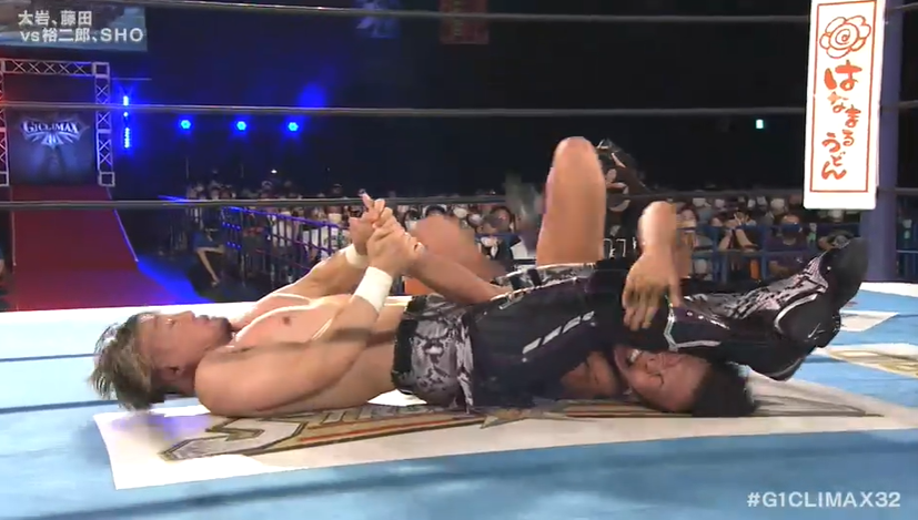 Takahashi would regain some control in the ring with a sliding dropkick, before tagging in SHO. Oiwa would nail a big dropkick, and would make the tag to a fresh Fujita. Another dropkick would level SHO, before looking for that Belly to Belly Suplex. He’d connect with the throw, before looking for the Young Lion finisher – the Boston Crab.