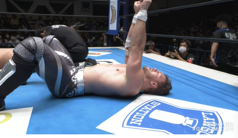 Satellite DDT and Pimp Juice from Takahashi would set up for Big Juice – but Ospreay would strike away at Takahashi before looking for OsCutter. It’d be blocked, but Hidden Blade was not. Ospreay moves to four points.