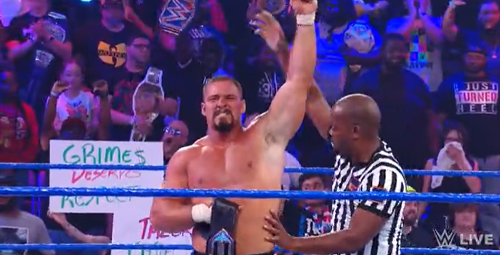 Both men would trade blows on the mat, with Breakker unable to strike with the right arm – and still about to strike Grimes down. Some shoulder tackles and a powerslam would follow, before Grimes managed the Spanish Fly in the middle of the ring for a near fall.