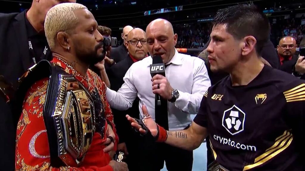 The UFC’s freshly crowned interim flyweight champion, Brandon Moreno, reacted surprisingly well to arch-rival Deiveson Figueiredo’s Octagon invasion at UFC 277. Not long after Moreno earned the interim title with a victory over Kai Kara-France, Figuereido, with his own belt firmly in hand, walked into the Octagon to challenge Moreno to a fourth fight. Speaking on The MMA Hour, Moreno explained how he remained calm despite his rival’s presence.