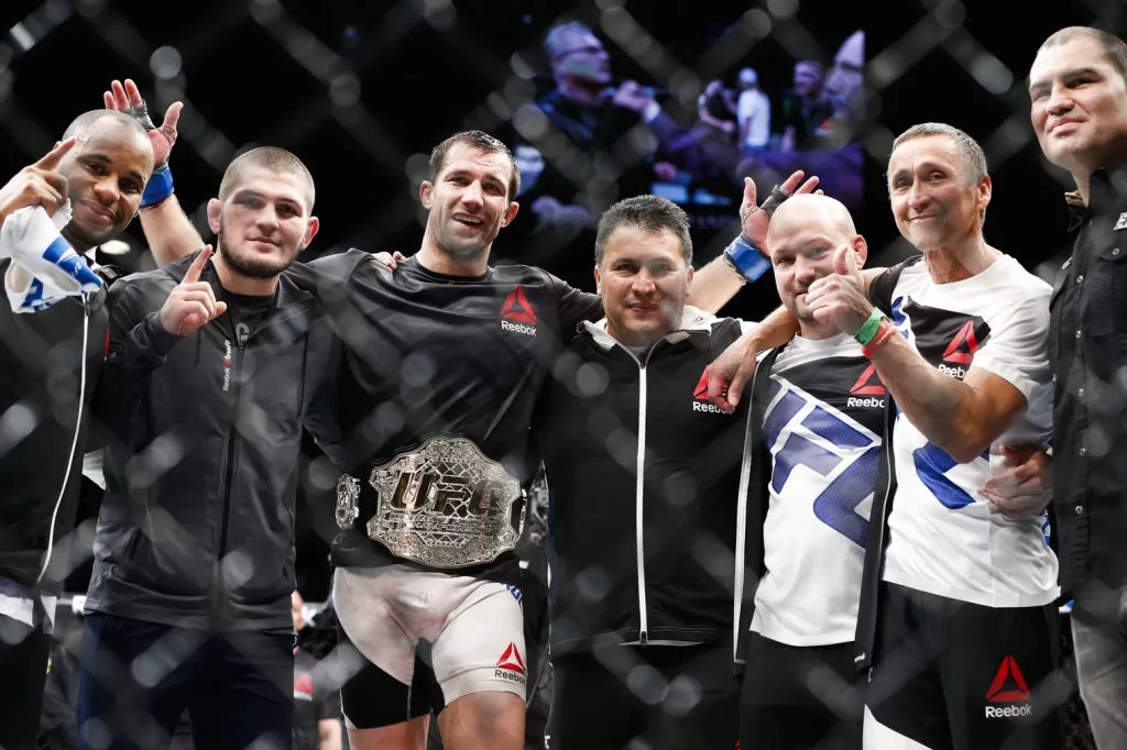 I got this picture sent to me and now we’re all gone. You look at this photo and it’s Khabib Nurmagomedov, myself, Luke Rockhold and Cain Velasquez and if you look at the coach off to the right, to the left of Cain, he’s dead. Cain’s in jail. We’ve had some really, really great times at the American Kickboxing Academy and the final of the guys we called the “four kings” takes a bow in front of the fans tonight in what I believe was a fairytale ending for Luke Rockhold.”