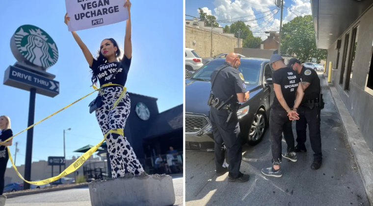 Protestors Don Cement Shoes, Claim Cows Are Raped – Demand Starbucks “End the Vegan Upcharge” on Plant Based Milks