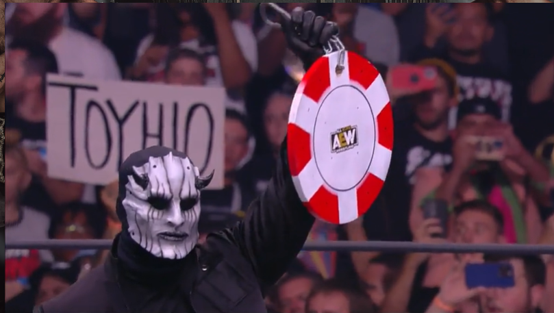Coming out to Sympathy for The Devil and wearing a mask, no one knew who this was exactly – but he was to be handed the chip and the win. The music would be cut, and he’d finally unmask… or not. They had the mannerisms of MJF – but we will need to wait and see.