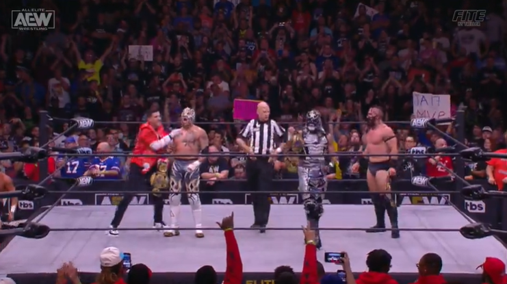 Cassidy would start off with Penta, before taking the kick to the chest. Trent & Chuck would cut down the Lucha Bros before being sent to the floor. Best Friends avoided a triple dive to the floor, and launched Cassidy onto all of Death Triangle. They’d brawl up to the ramp, where Best Friends maintained control – before Penta would be pinned in the ring for a two count.