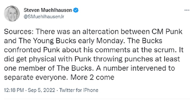 While it’s been reported that no one really knows who threw the first punch, it’s also been reported that Punk threw punches at one of the Young Bucks and one of them went to the hotel with a black eye.
