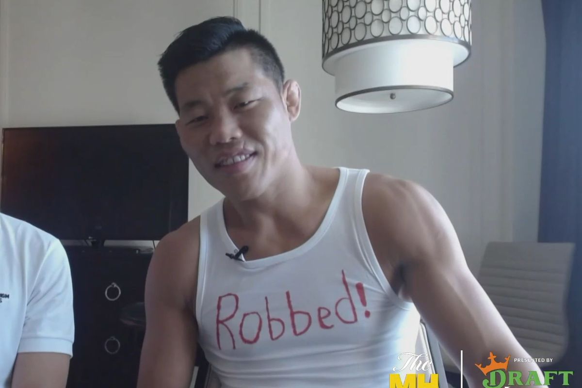 Jingliang discussed how Khamzat’s failure to make weight trickled down to affect his fight plans on The MMA Hour, while wearing a shirt emblazoned with the word “Robbed!”