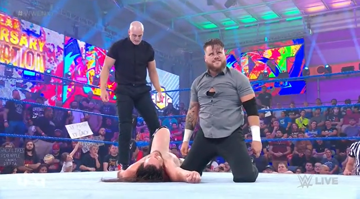 Grimes claimed he didn’t need Gacy, before taking Ticket To Mayhem from The Dyad. Gacy said that was his last chance, and hit the Upside Down Lariat once again. Schism would pose above Grimes, and things just went from bad to worse for Grimes.