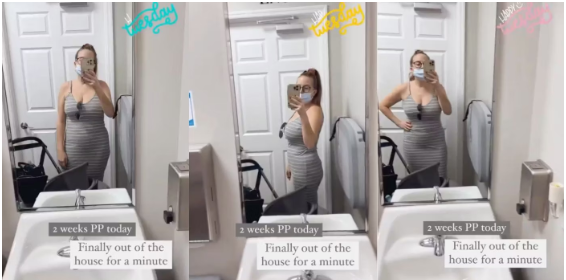 The young mother posted a selfie video showing herself wearing a dress with gray and white stripes on her latest Instagram Story. Libby was seen exposing her stomach to the camera in the footage. She added that she had finally been given a chance to get dressed up and leave the house “for a minute” in the caption of her image, “2 weeks PP today.”