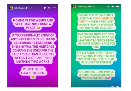 Fans immediately took to her DM to help but they only shared agents’ links, she responded, “Thanks for trying to help, everyone. I don’t need an agent—mine is great. Just haven’t found a property that works or feels right. I’m looking for anywhere from Lakewood to San Diego.