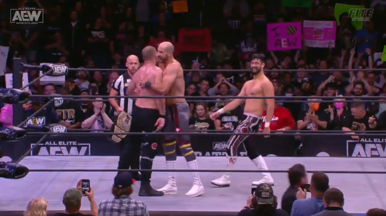 Yuta would hit the ring alongside Kassidy, and would show his grappling skills could prevent Kassidy from gaining some speed. Moxley & RUSH would hit the ring and trade blows in the middle of the ring. A drop step into a German Suplex would send RUSH into the corner, allowing Moxley to run in with a lariat before biting the forehead of RUSH. RUSH would signal for Private Party to take out Yuta & Claudio, with Quen planting Yuta on the stage and nailing a 450 Splash.