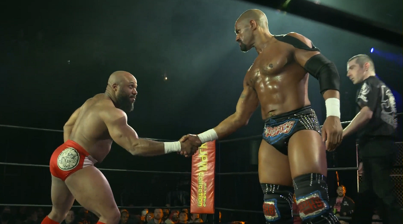 Gresham would roll down to the floor with the hold still intact, holding it to get maximum damage. It would not be enough, as Rosser got free and hit a Back Body Drop – causing Gresham to crash onto the thin mats at ringside. Rosser would hit a Tenryu style combo in the corner of the ring, lariats with a follow through chop.