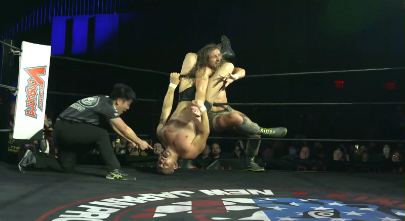 Umino would assist with a double dropkick, before being dropped with the Uranage from Lawlor. A kick to the face would follow, before a Powerbomb toss into a German Suplex from West Coast Wrecking Crew. Triple team powerbomb from Team Filthy would have ended it, but Homicide made the save.