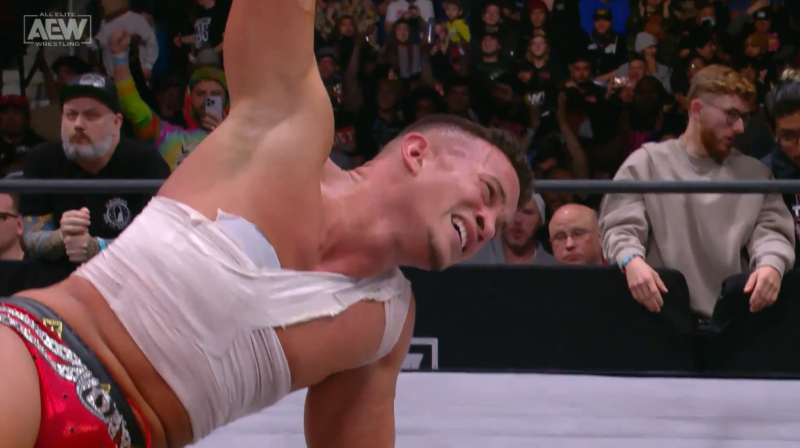 On the way to the ring, Stokely Hathaway would say that everyone should already celebrate the victory of Ethan Page – as it’s a certain fact. One man disagreed, and he might be as taped up as 90’s Diamond Dallas Page – but Ricky Starks still has more fight to bring. The crowd was 100% behind Ricky Starks, but a kick to the taped up ribs would stagger him.