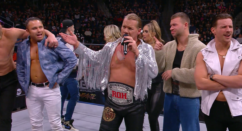 Backed by the Jericho Appreciation Society, the ROH World Champion would hit the ring. Jericho would ask if there is any doubt that he’s the greatest champion in ROH history. He’s beaten everyone put in front of him, from Colt Cabana to Bryan Danielson to Tomohiro Ishii. Jericho has bled for this title, sweated for this title, and earned this title.