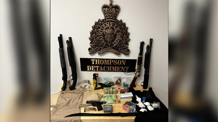 Given the amount of weapons and drugs found at the residence, the RCMP out of Thompson continue their investigation.