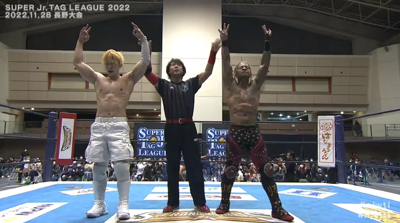 NJPW Super Junior Tag League Results: Lio Rush & YOH [8] Hand Ace Austin & Chris Bey [8] Their First Tournament Loss (11/28)