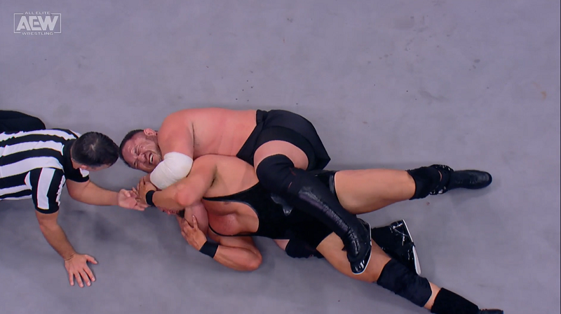 Wardlow would drive Joe into the corner with some strikes, focusing on brawling – as even a shoulder tackle caused damage to the knee. Joe would hit some kicks to the leg, before being caught with a spinebuster and some ground and pound style blows. A lariat in the corner was just ducked by Joe, before the Uranage planted Wardlow.