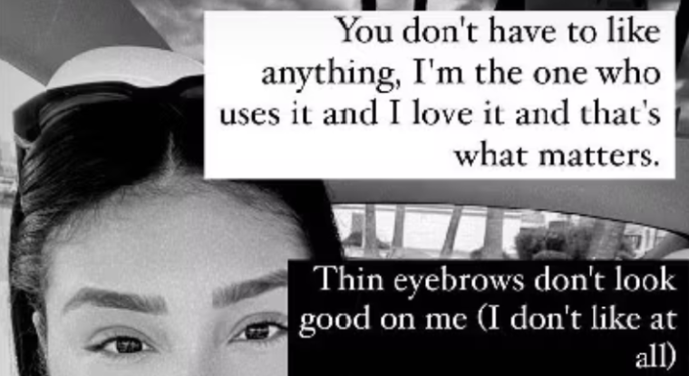 The post was captioned by the following words: “Ladies who don’t have hair on their eyebrow. You don’t have to like anything, I’m the one who uses it and I love it and that’s what matters.”