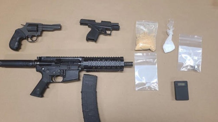 Authorities found Allen in a parked truck behind a house on Medora Street and arrested him at 2:30 PM. It was reported that the arrest went off without incident. A check of his person turned up a loaded handgun in his pants. His vehicle was searched and authorities found a rifle, a revolver, marijuana, heroin, cocaine, meth, and drug paraphernalia.