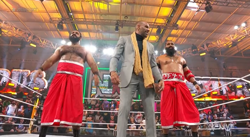 Gutwrench Powerbomb landed with Veer able to kick out. Spinebuster would land, but Mahal would grab the foot. Nile would berate Mahal, only to be taken off the apron by Julius by accident. Chokeslam would follow – and Indus Sher wins.