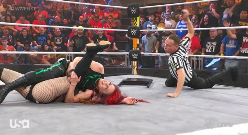 Finally at ringside, Dawn would be driven into the post face first and rolled into the ring. Bell would finally ring, but the damage to Dawn was done. She’d be driven into the corner with a steel chair in her midsection, but came back with a snap suplex into the corner. Dawn would stomp the hand of Fyre, only to take a Gory Bomb for a two count.