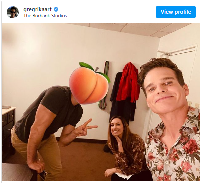 Rikaart took to Instagram to share a fun picture in a dressing room with Emily O’Brien and an anonymous coworker. The trio seem to be having a blast working together at the studio. Rikaart covered the anon’s face with a peach emoji, so as to keep his identity secret, but fans can see that the man looks muscular and handsome.