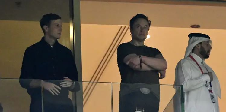 The paparazzi caught Elon Musk entering the Lusail Stadium in the finals of the World Cup. Later paparazzi took his photos next to Jared Kushner.