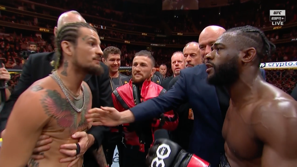 “It does kind of suck for Aljo, just having to get pushed in there and not really getting a say. But the UFC knows what they’re doing. The UFC knows what they’re doing. I just try to stay out of that. But I do see Aljo going off about, ‘Who is the smarter one?’