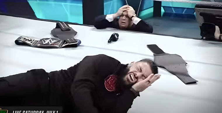 Jey responded by slapping Reigns and Jimmy took him out with a superkick. A brawl broke out and security and officials came out, but Reigns managed to hit a Superman Punch.