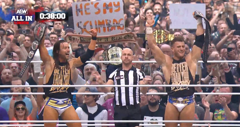 Home»Wrestling»AEW»AEW All In Results: MJF & Adam Cole Win ROH World Tag Team Championships, Mercedes Mone Is In The Building, HOOK Regains FTW Championship (08/27)