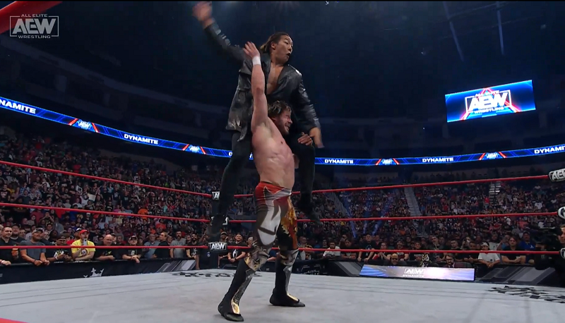 Konosuke Takeshita would hit the ring, and FTR would follow. Omega would hit a knee strike to the jaw of Takeshita and try for the One Winged Angel.