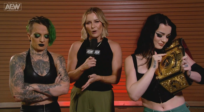 Speaking with Renee Paquette backstage, The Outcasts were asked about Storm being ‘forgetful’ about screwing Soho out of the belt. Storm has lost her mind – and Saraya intends to simply knock some sense into her. Saraya is feeling confident as champion – and will defend the AEW Women’s World Championship at Grand Slam.