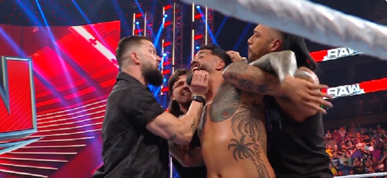 Jey caught Drew with a superkick for a near pinfall, then received a pep talk from the Judgement Day. He and Priest fist bumped, and he hit superkicks on all of them on the apron and Drew hit a Claymore for the win.