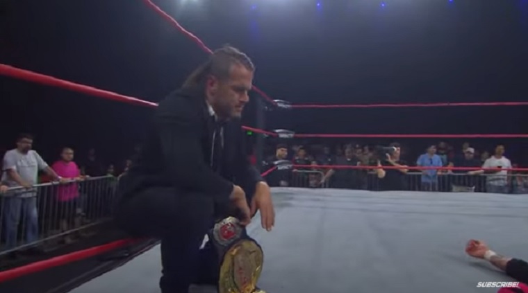 Shelley regrated it afterwards as his emotions got the better of him, and he grabbed his title belt and sat on the bottom rope to think on it.