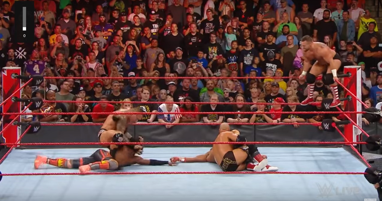 A quick match ended when Gallows superkicked Strowman when he was about to finish Styles off. They then threw Strowman into the ring posts several times before Rollins came out to return the favor from last week.